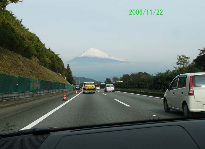 筑波サーキットで開催された上記GF-TとFクラスに参加のため、前日の朝から2台で出発。途中写真のように富士山がきれいに見えた。 |