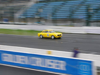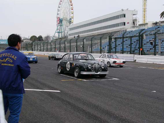 以前、当社でメンテナンスをさせて頂いたジャガーMkU3.8L、毎年元気に参戦している。ドライバーもヒストリックレースをしっかり楽しんでおられる様子。 |