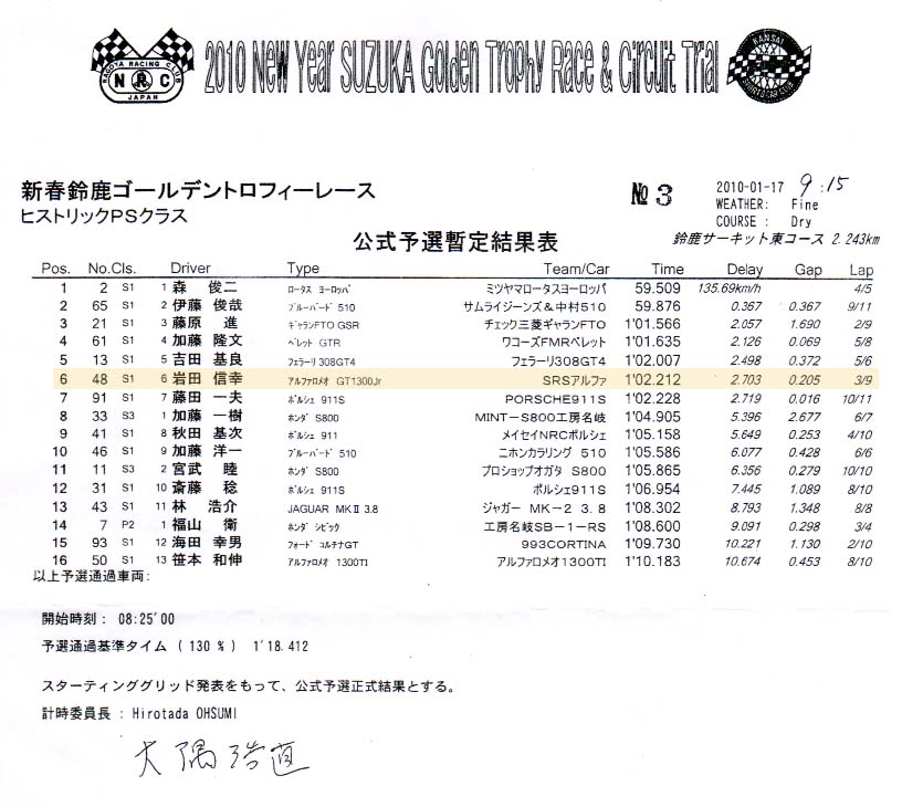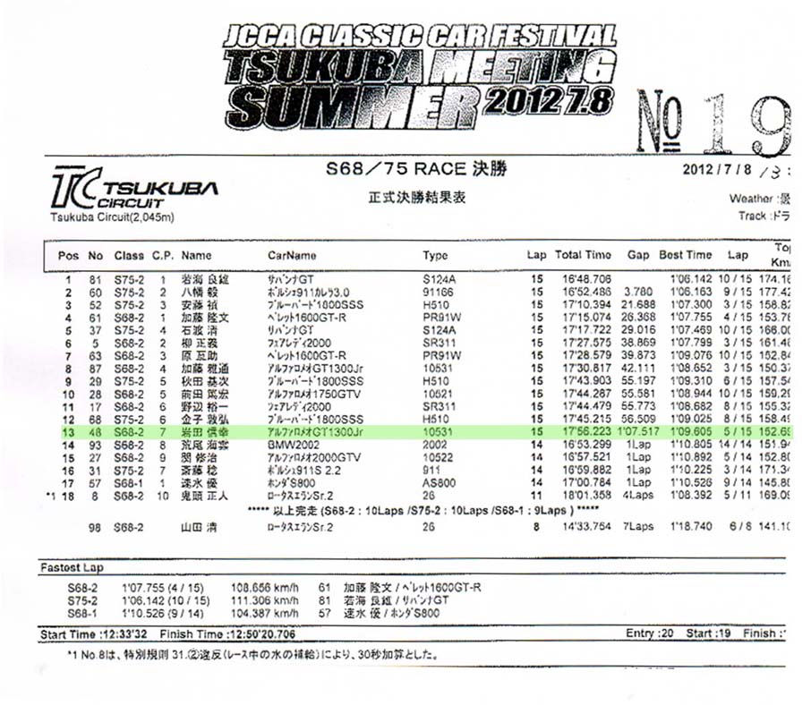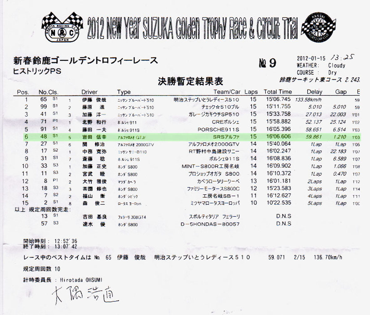 GF-Fクラスは温泉に浸かりすぎたか、作戦のしすぎか、激しく追い上げるも、今回は今ひとつだった。それでもシリーズは上位入賞した模様。 |