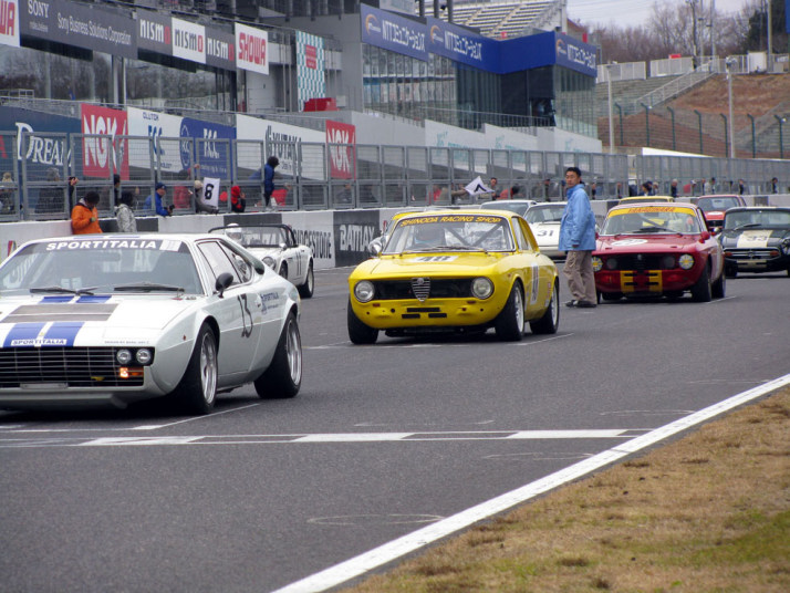 当日、同時開催されたクラシコでも、熱心なアルフィスタ達が遠方から駆けつけ大にぎわいだった。各参加者も、レースクイーンと一緒に写真に収まり、大満足の一日だったようだ。 |