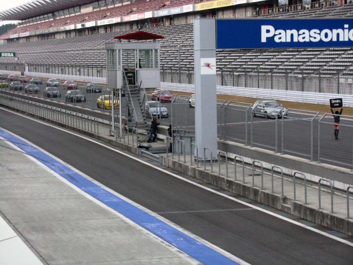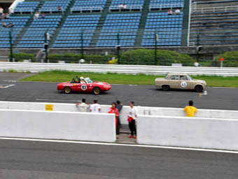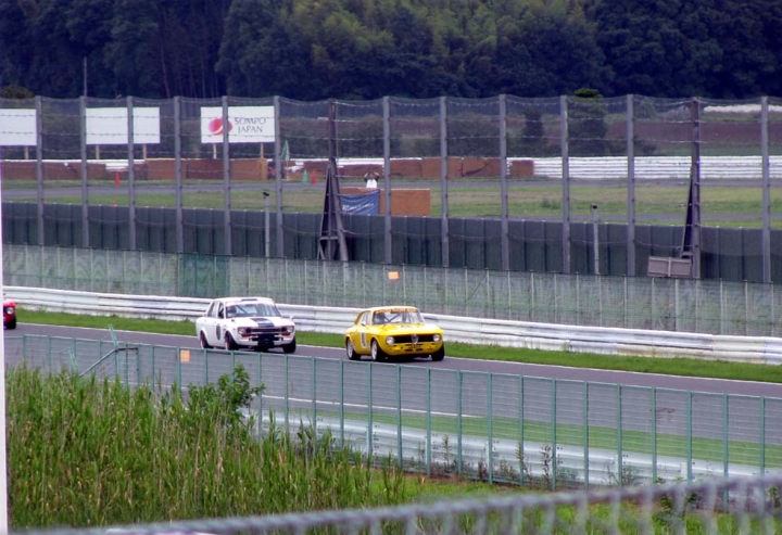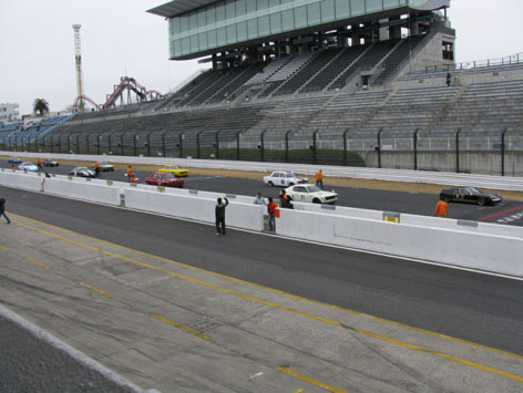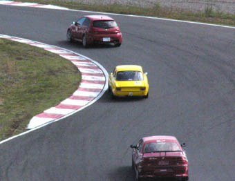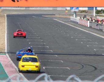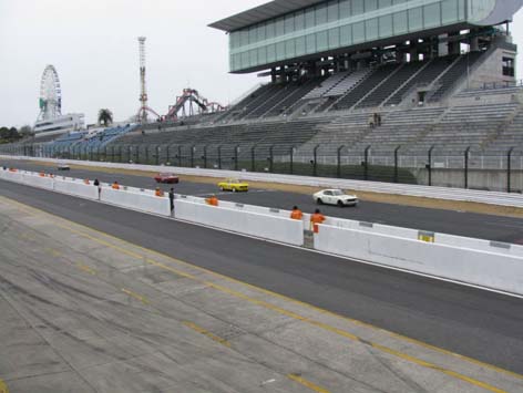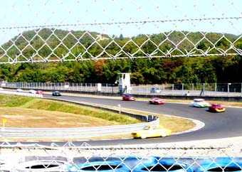 今回、初めてのフジスピードウエイのレース。このコースm今回初めてで、他のサーキットに比べ、コース幅も広くどこを走っているのかさえ解らない。 |