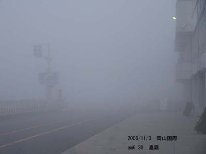 今回am4時頃に現地到着。中国道で岡山に近ずくに従い濃霧で視程が悪くなってきていた。ゲートオープン後AM6.00サーキットの視程はこんな感じ。 |