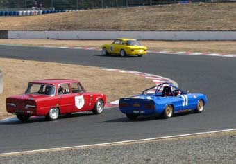 当日、Aグループで参加のヒストリック車両。スパイダーは、皆さんご存じの、アウトパルコ社長の谷中さん。 |
