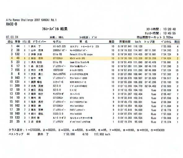 2007/03/04: ARCA 関西第1戦 岡山国際