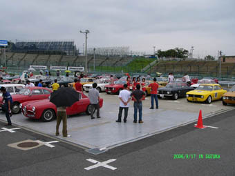 早朝のパドック内は、すでに多くの参加車両が並べられていた。