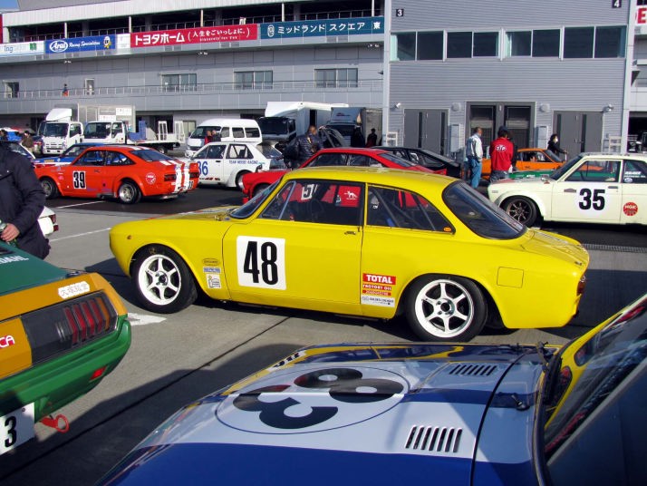 毎度多種多彩な参加車両でパドックがにぎわっている.。今回は、以前当社のOH済みENGの購入と、その他色々修理させて頂いた国分寺のSさんのチャーミングな奥様も、BMWレース関係者の応援で来場されており、少ししかお話しできませんでしたが、大変うれしかったです! |
