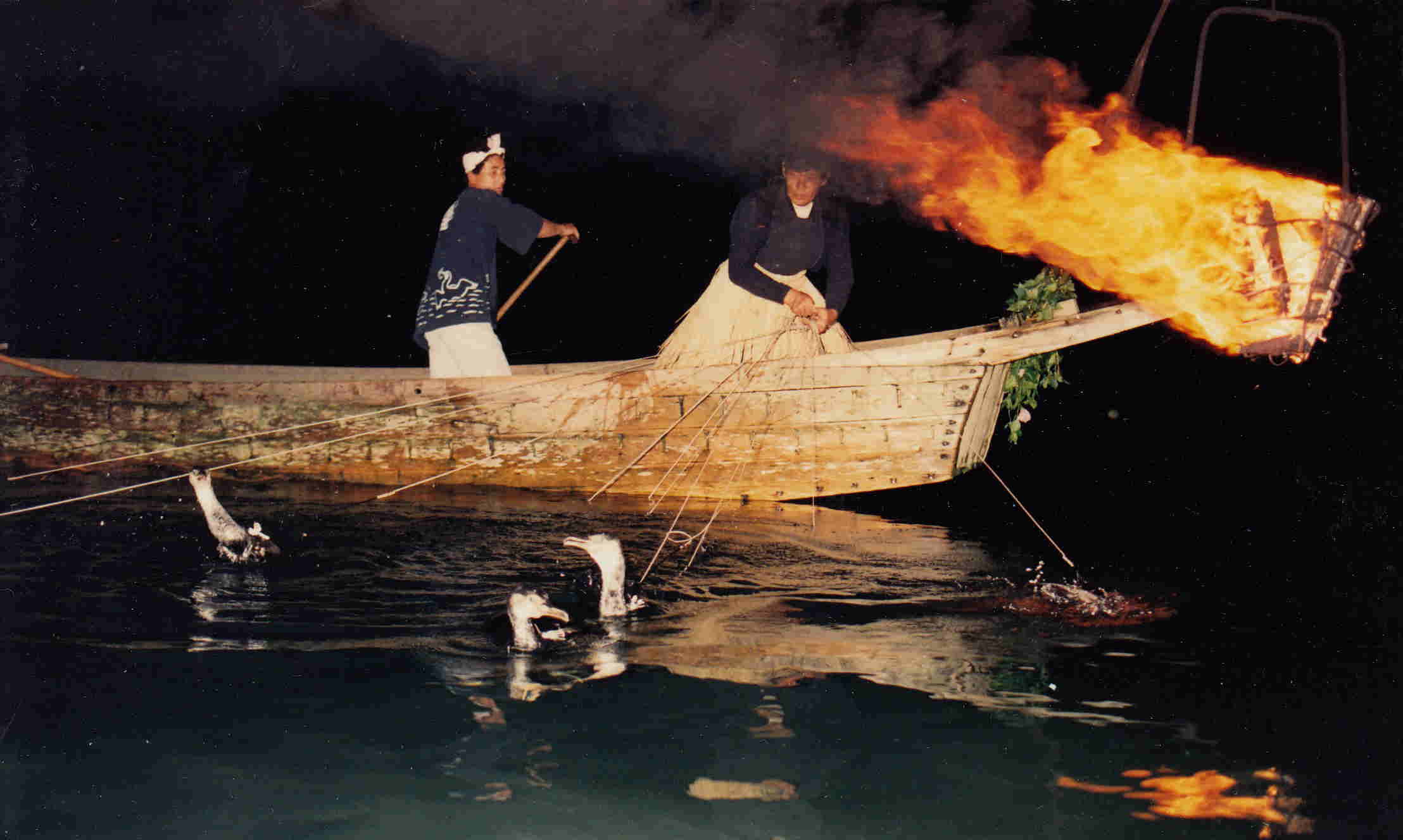 鵜飼といいますのは、人間が鵜を使って魚を獲らせる漁法です。