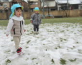 1月の3連休中に雪が降りましたね!保育園のお庭や、幼稚園の運動場にも雪が残りました。