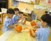 のりでベタベタ、紙を貼って、楽しいね。何ができるのかな?