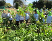 近くの畑に出かけ、年中さんと、年長さんが大根掘りの体験をしました。おでんにすると美味しい大根のようです。