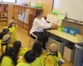 先生に大好きな絵本を読んでもらいます。明日も元気に来てね。 |