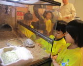 手洗いのついでに亀を眺めていく年少さん、生き物も大切なお友達だね。ほっとするひとときです。