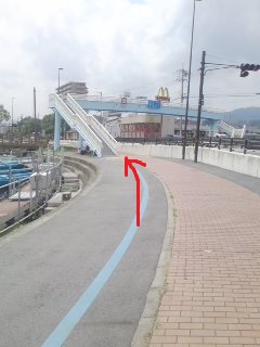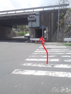 | 国道1号線くぐる | くぐったところを右へ 階段登る |