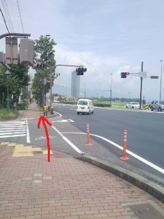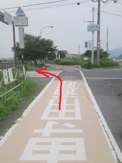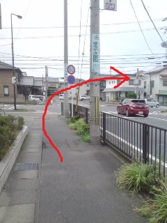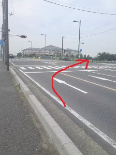 すぐに左へ(信号あり) | ここは歩道なし 交通量多い(注意) |