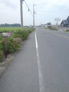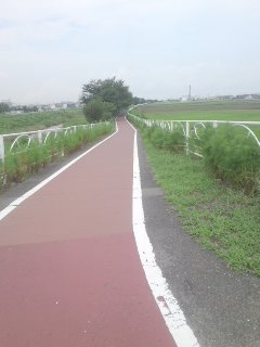 田んぼの中、川の手前、 歩行者、自転車ロードへ |