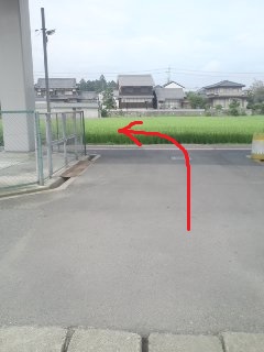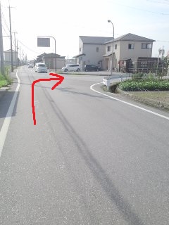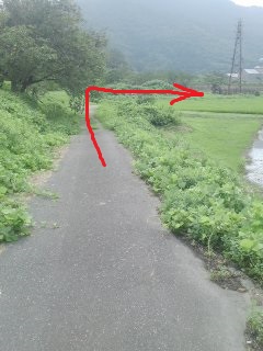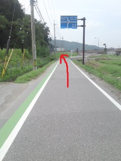 すぐに右へ | 田圃道、直進 | 突き当り、左へ |