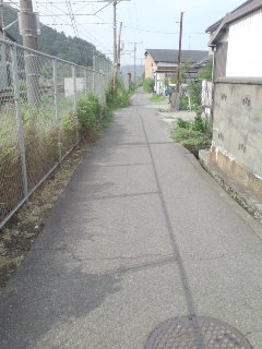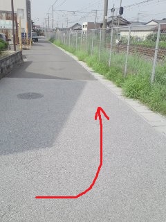 線路沿い、直進 | 突き当り、左へ 踏切渡る |