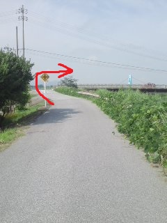 | 橋の手前、左へ | 右に折れ、橋を渡る | 能登川まで道なり | 踏切渡る、左へ |