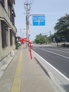 すぐに左折(城横通り) | 突き当り右へ | すぐ左へ(県道2号線) |