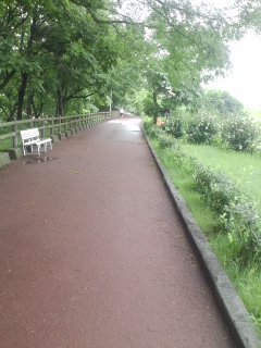 | しばらく河川敷コース | 再び堤防へ | 右手フラワーパーク | フラワーパーク 自販機あり |