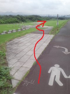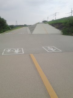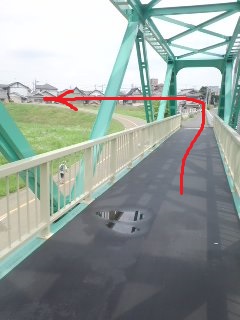 | 愛岐大橋手前 | 左へ、堤防から 降りる |