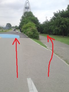 | 公園内通過 | タワー下を通過する | 再び堤防へ | 河川敷へ |