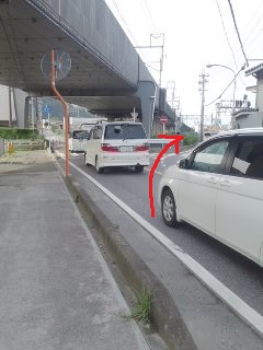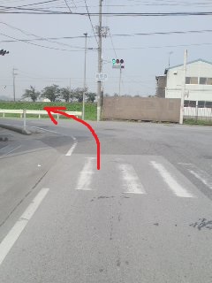 | 歩道が無くなる(注意) | 歩道なし | 右へ(線路くぐる) | 左へ |