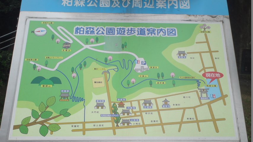 | 石畳コースで水道山展望台方面と、時の鐘方面のコースがある 時の鐘から七曲り登山口方面は、金華山ドライブウエイに出る(ロード) |