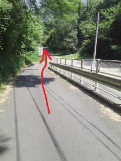 歩道橋前に標識があるが、 民家の中は面白くないコース |