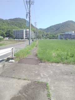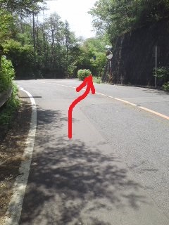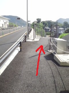 | 峠を越えると右側に 歩道あり |