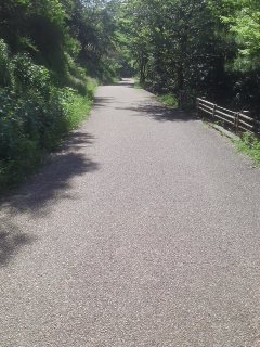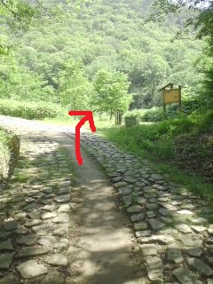 | 自転車コースを横切り、 下ると、石畳みコースを左折 |