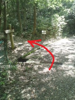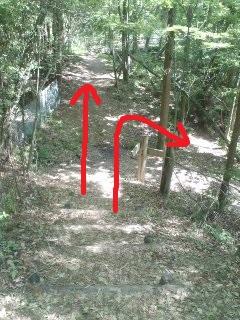 | 階段登って、右折 | 右:寒洞池右側コース(駐車場) 直進:寒洞池左側コース どちらでもOK |