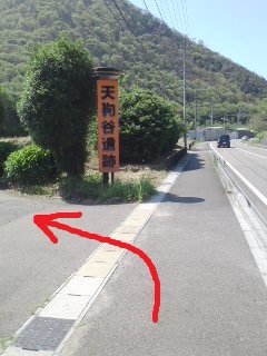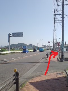| 標識あり | 歩道橋を渡って、民家を 抜けるのが正式コースだが、 国道を左折した方が良い |