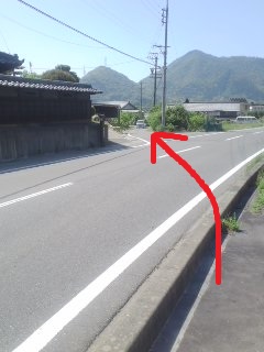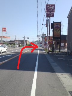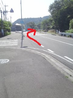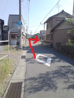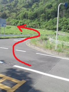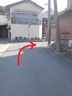 | 道なりに右折 | 突き当りを左折 標識なし |