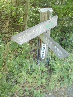 | 崩れそうな標識あり | 左折したあとはひたすら登る | 右にそれる(ここから急勾配) |
