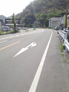車道を左へ、峠を上る |