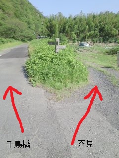 | 左折 | 堤防道路左折 | 千鳥橋と兎走山が 見える |