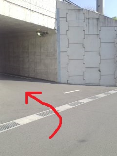 トンネル抜けて、下りる | 左折して道路をくぐる |