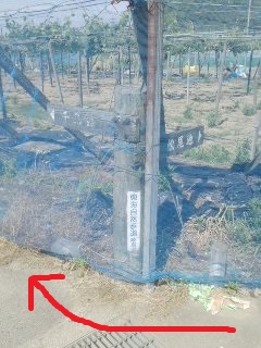 | 左折 | ぶどう畑右折 | 畑の中の標識がわかりにくい |