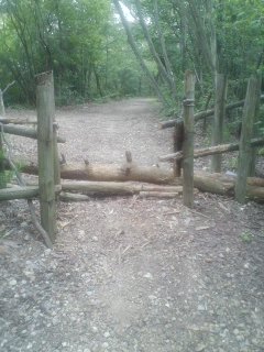 | 林の中へ(右へ) | あとは道なり、しばらく 進んで、鉄塔手前を左へ |