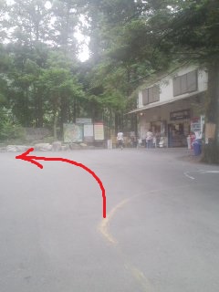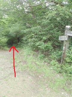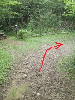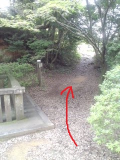 入鹿池の橋の手前を左へ | 八層キャンプ場へ |