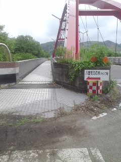 | 橋を渡って左折 | 八層キャンプ場(自販機) | 柵の横を通る (八層キャンプ場) |