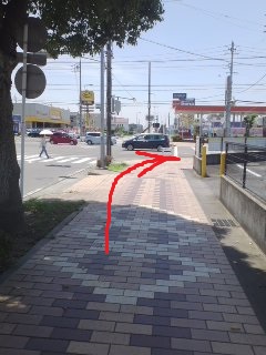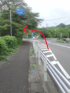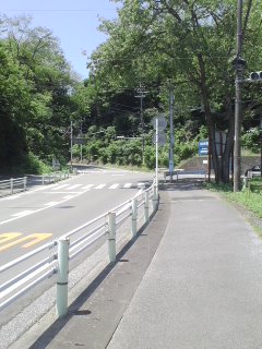 | 車道に出たら左へ 道の反対側に歩道あり |