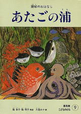 「あたごの浦」 これは何が好きかというと・・・・ 登場人物(?)である、海の生き物達が実にキュートなのです。 満月の夜に浜に上がってきたタコ・鯛・ふぐ。 事もあろうに宴会を始めた彼らの一発芸が描かれてるのですが その芸を見せる側と見る側の掛け合い言葉が最高! 読み終わった後に、こいつら何てオマヌケで生き生きしていて可愛いんだ! と私は大好きな絵本です。 |