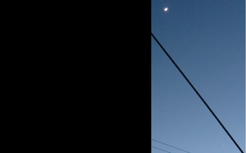 シリウス & 月 月齢6.2 高度38.1° & 金星 高度19.8°-4.5等級