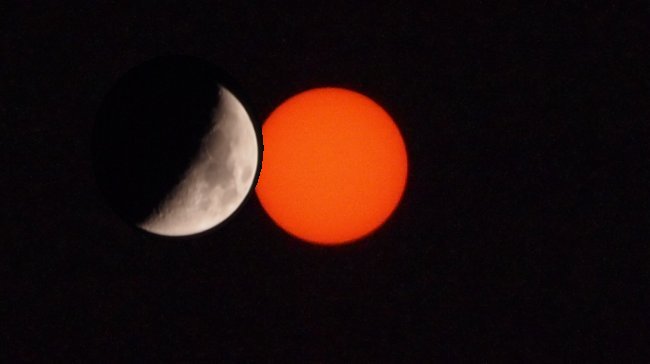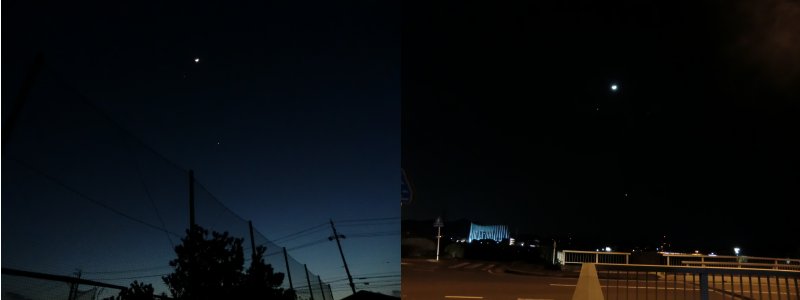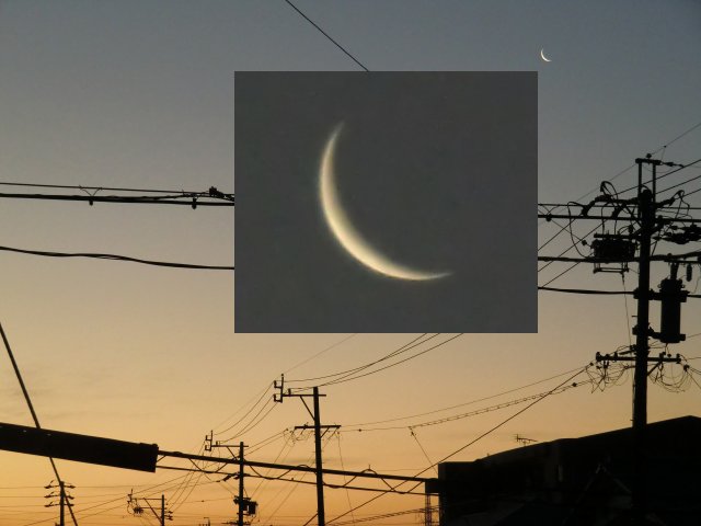 6:55 太陽S=1/500 f=5.6 ISO=1600 18:55 月s=1/10 f=22 ISO=200