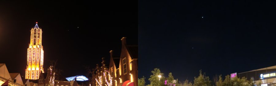 2012年3月21日 20:06 金星−4.3等級 高度17.8° 木星−2.1等級 高度11.0°視距離7.1°