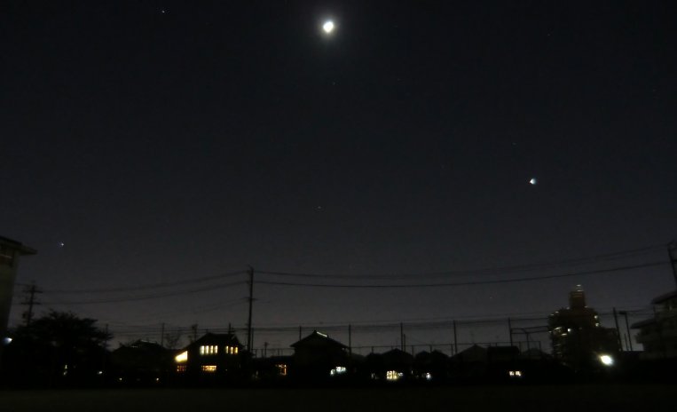 2012年2月27日 18:21 と 20:34 月と金星と木星