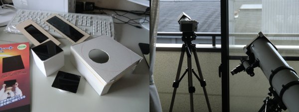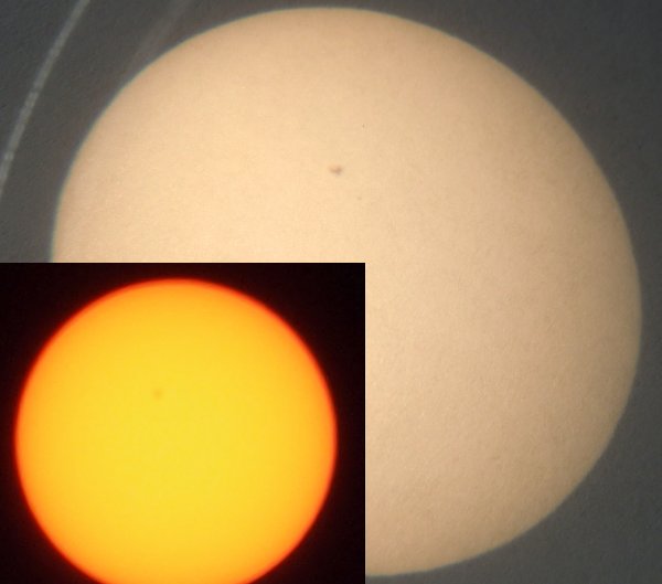 太陽投影7:01 と デジカメ撮影7:10 黒点確認