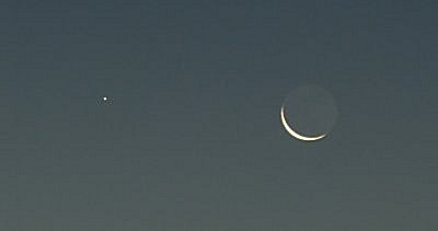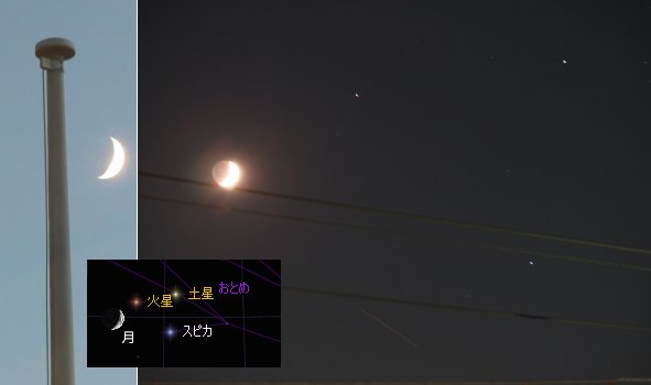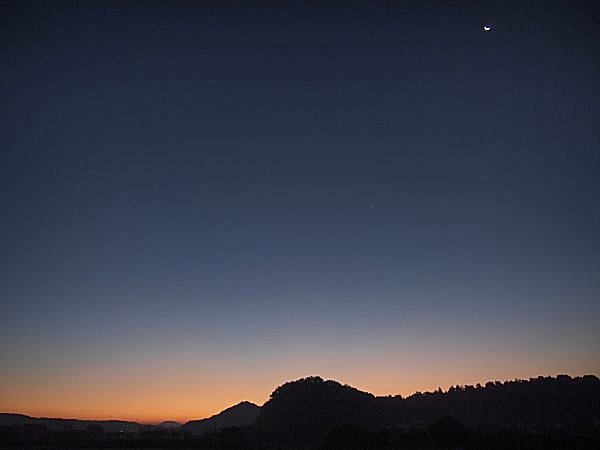 2012年10月13日5:30 月齢26.8 高度26.2°金星-4.1 高度31.6° 露出1/3秒 F5.6 23mm ISO 200 by E-PL2